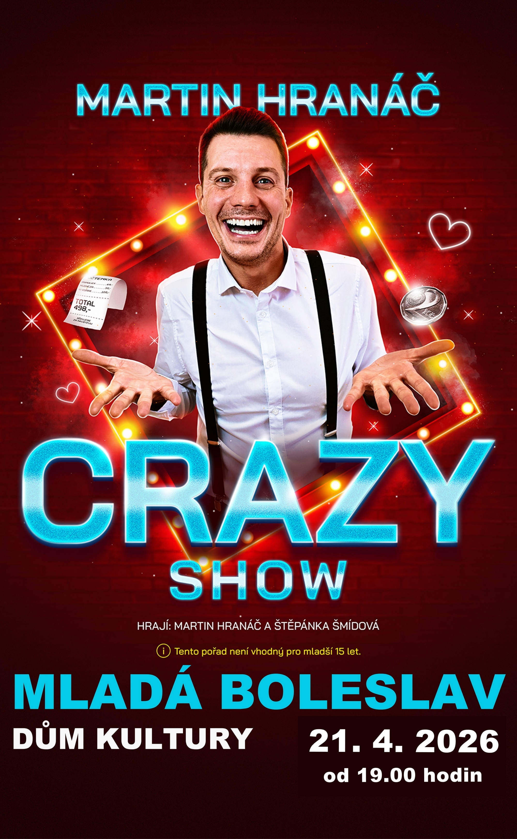Chcete vstoupit do světa humoru a improvizace? Tak je CRAZY SHOW právě pro VÁS! Připravte se na nezapomenutelný večer plný smíchu s Martinem Hranáčem – komikem, hercem, číšníkem a optimistou, který svým jedinečným smyslem pro humor baví lidi na sociálních sítích. Martinův příběh číšníka a jeho každodenní zážitky z gastronomie se stávají zábavným vyprávěním, které osloví naprosto všechny.