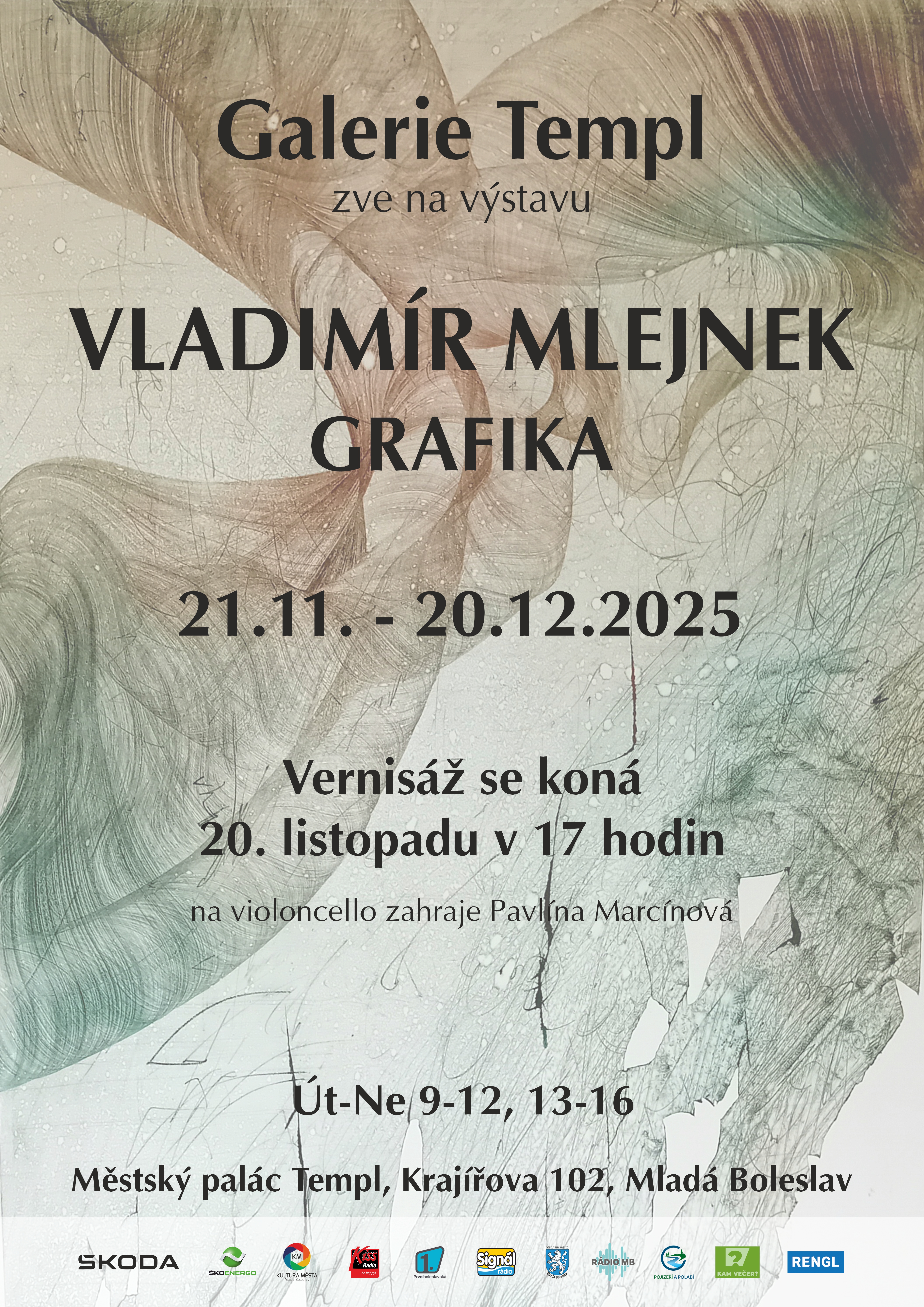 Zveme Vás 20. listopadu v 17 hodin na vernisáž výstavy Vladimír Mlejnek GRAFIKA. Součástí vernisáže bude hudební vystoupení violoncellistky Pavlíny Marcínové.